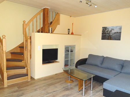 - Wohnzimmer mit Schlafsofa (zur Aufbettung nutzbar)